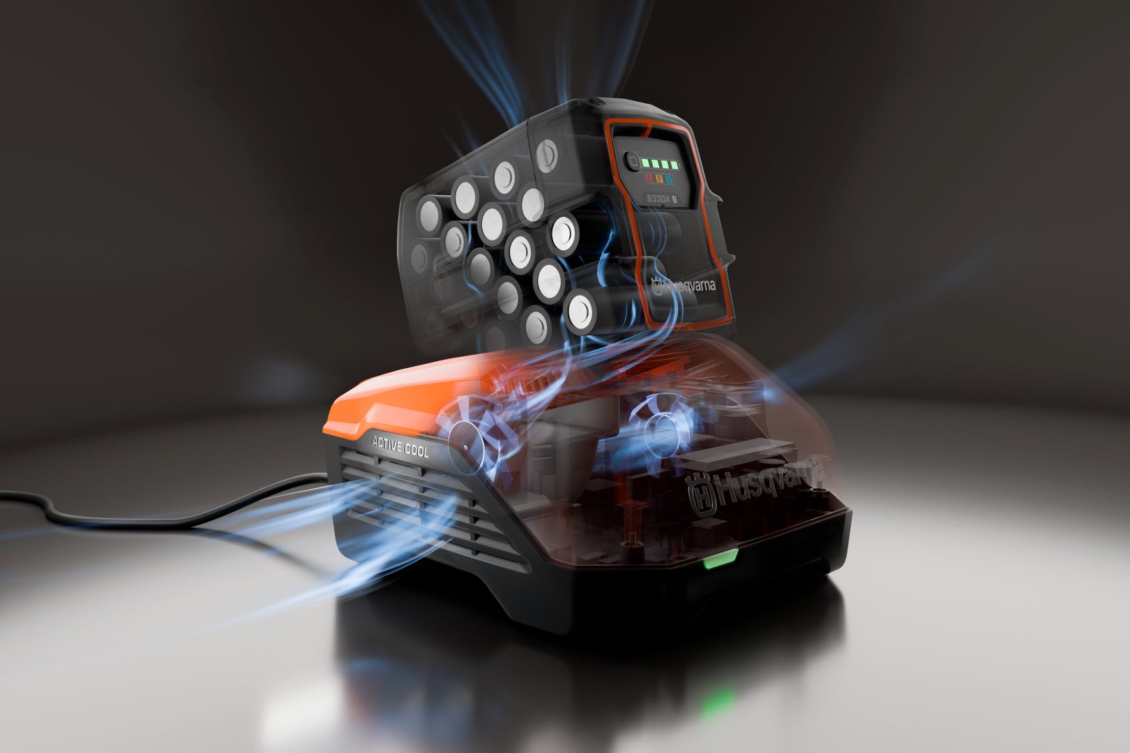 Systém ActiveCool ochladzuje akumulátor počas prevádzky a nabíjania. Akumulátor je vhodný na použitie so službou Husqvarna Fleet Services.