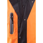 Bunda do dažďa SIP Protection Keiu je plne vodeodolná a priedušná. Bunda sa tak bude nosiť pohodlnejšie bez toho, aby sa pri práci príliš zahrievala. Jej ergonomický strih je moderný a štýlový. Fluorescenčná oranžová farba zaisťuje, že vás bude vidieť za denného svetla aj v noci. Bunda má navyše dobré štýlové detaily, ventilačné zipsy, kapucňu uloženú v golieri, hlboké vrecká a predĺžený chrbát, aby vám dážď nezatekal do zadnej časti nohavíc.