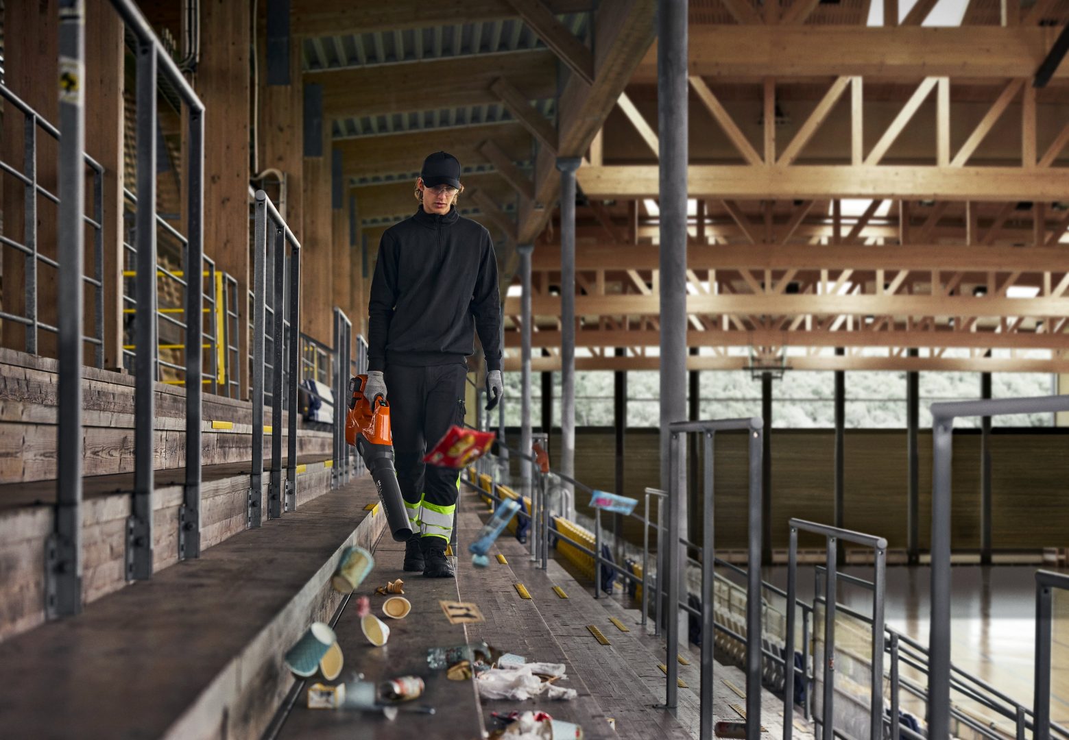 ● profesionálny akumulátorový fúkač na pravidelné upratovanie okolo domu a vo verejných priestoroch