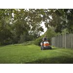 Pri práci poteší aj praktická výbava. Husqvarna TC 220T má šírku záberu 108 cm a asistované vyprázdňovanie zberného koša ovládané pákou, čo zvyšuje pohodlie pri každodennom používaní. Kompaktný dizajn zároveň pomáha pri pohybe na pozemku aj pri uskladnení stroja.