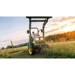 Kompaktný traktor John Deere 3038E rady 3E prináša výkon a jednoduché ovládanie. Medzi najdôležitejšie prvky patrí kvapalinou chladený 3-valcový dieselový motor 36,7 HP s turbodúchadlom a priamim vstrekovaním paliva Common rail, ktorý zaisťuje dostatočný výkon, hydrostatická prevodovka, pohon všetkých kolies, zadný trojbodový záves kategórie 1 a nezávislý vývodový hriadeľ k dosiahnutiu väčšej flexibility pri poľnohospodárskych prácach. Čím budete dlhšie pracovať, tým viac oceníte ovládanie automobilového typu, ergonomické sedadlo s vysokou opierkou a nastaviteľný volant a ďalšie prvky, ktoré zaisťujú pohodlie a tým aj produktivitu. S kompaktným traktorom John Deere 3038E zvládne širokú škálu úloh počas celého roka, od kosenia trávy, rýpanie, rotavátorovanie, oranie až po odhrabávanie snehu.