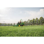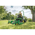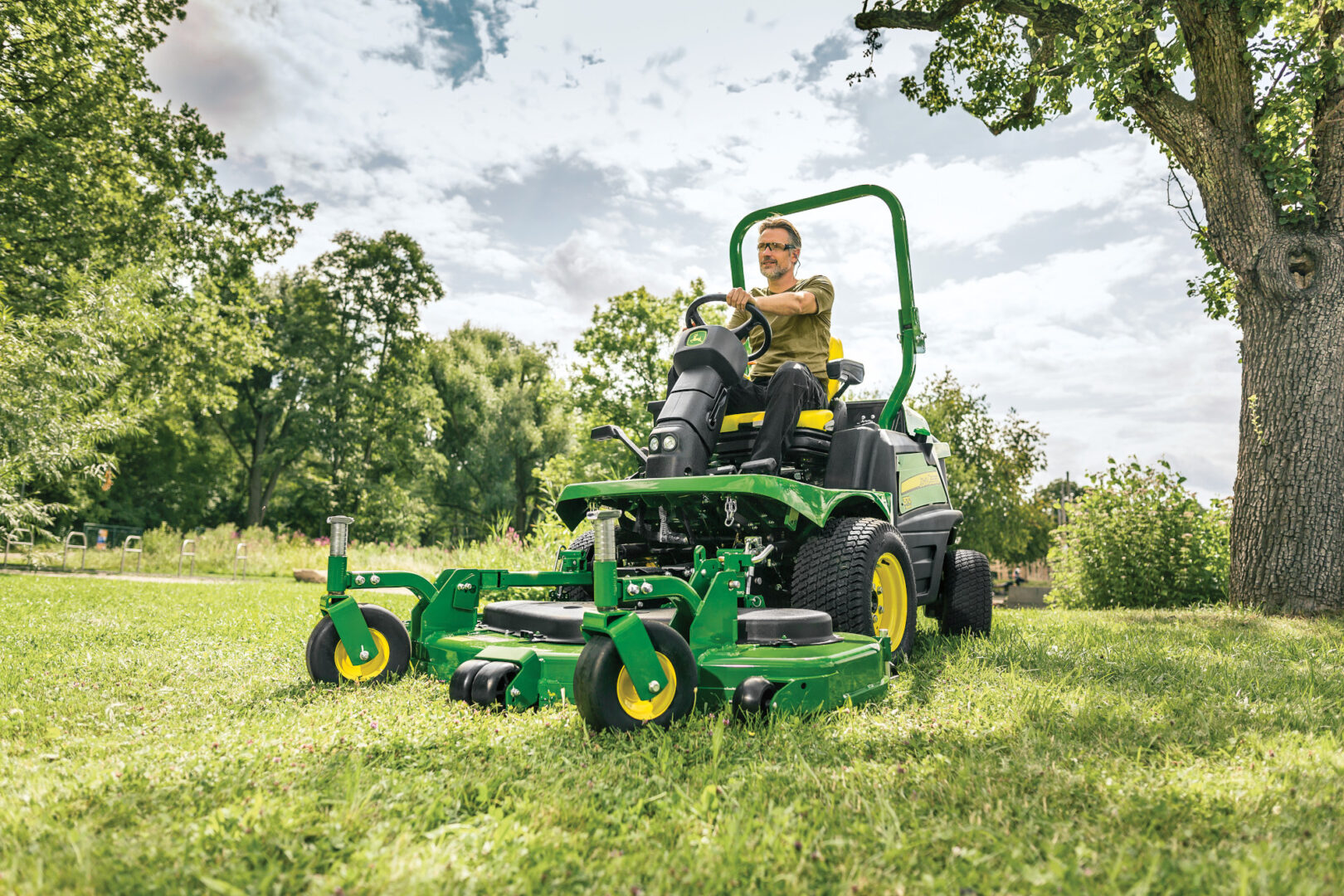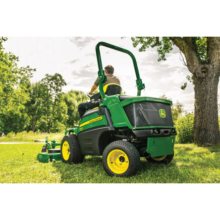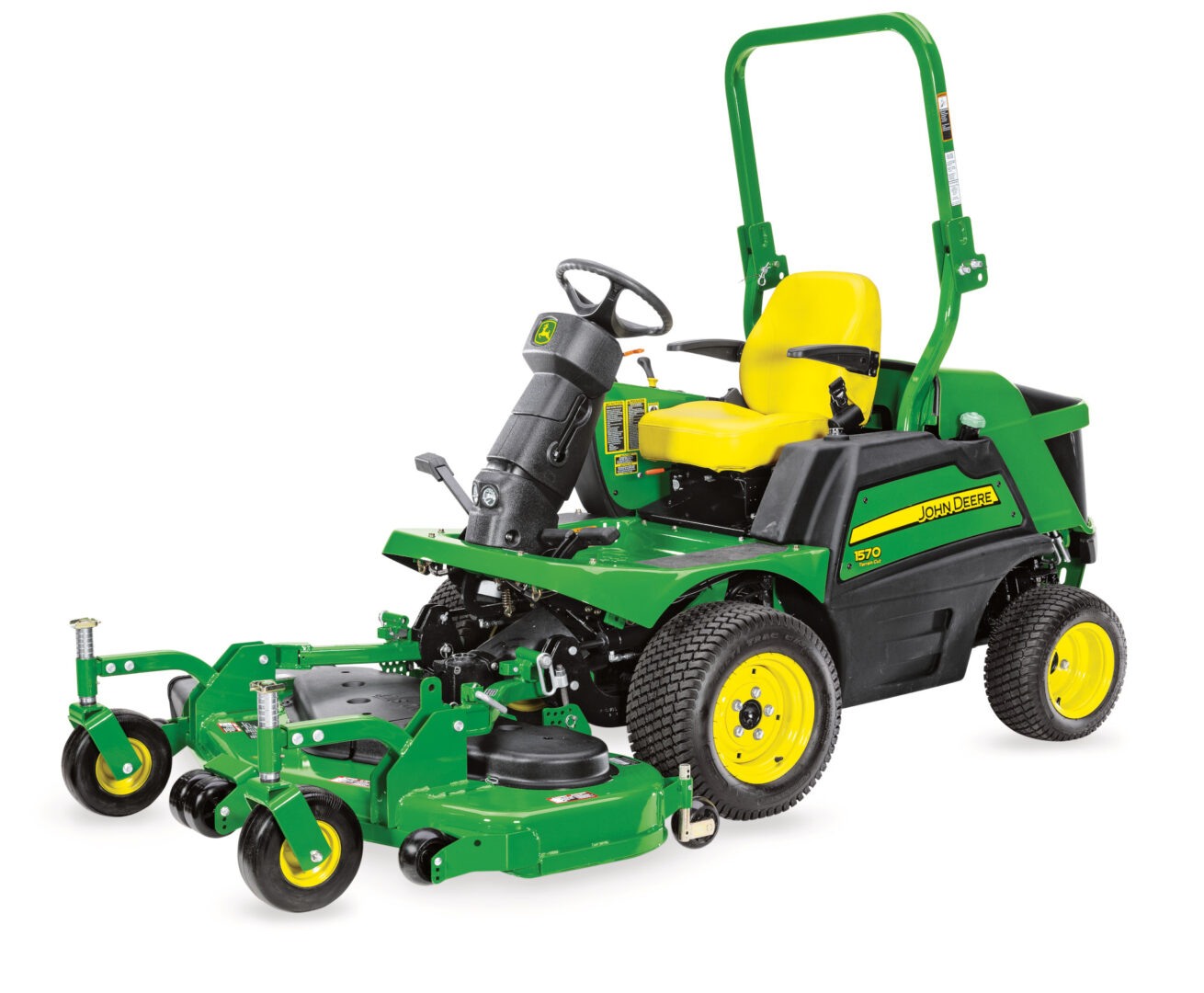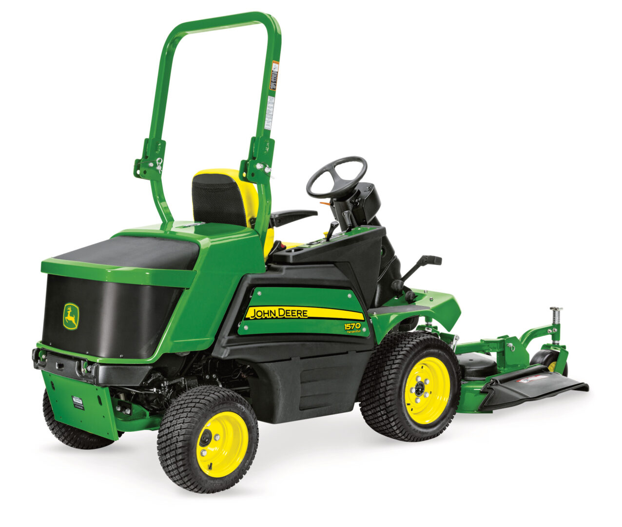 Tento model je určený pre predné kosiace zariadenia so záberom 152 cm, 157 cm alebo 183 cm. John Deere pri modeli 1570 uvádza 60″ 7-Iron™ PRO s bočným vyhadzovaním, 62″ Fastback™ so zadným vyhadzovaním a 72″ varianty v oboch verziách, takže zákazník si vie zvoliť vhodnú zostavu podľa typu plochy a požadovaného spôsobu kosenia. Predné žacie zariadenie zároveň pomáha lepšiemu prístupu k okrajom trávnika, okoliu stromov a ďalším prekážkam.