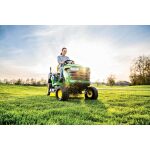 Pri práci poteší aj výbava zameraná na komfort a dlhšiu životnosť. John Deere pri modeli X147R uvádza elektrické zapínanie žacieho ústrojenstva, plnotlakové mazanie motora s olejovým filtrom a robustný rám, čo podporuje spoľahlivú prevádzku pri pravidelnom nasadení. Zadný zberný systém s kapacitou 300 litrov zároveň umožňuje dlhšie kosenie bez častého vysypávania.