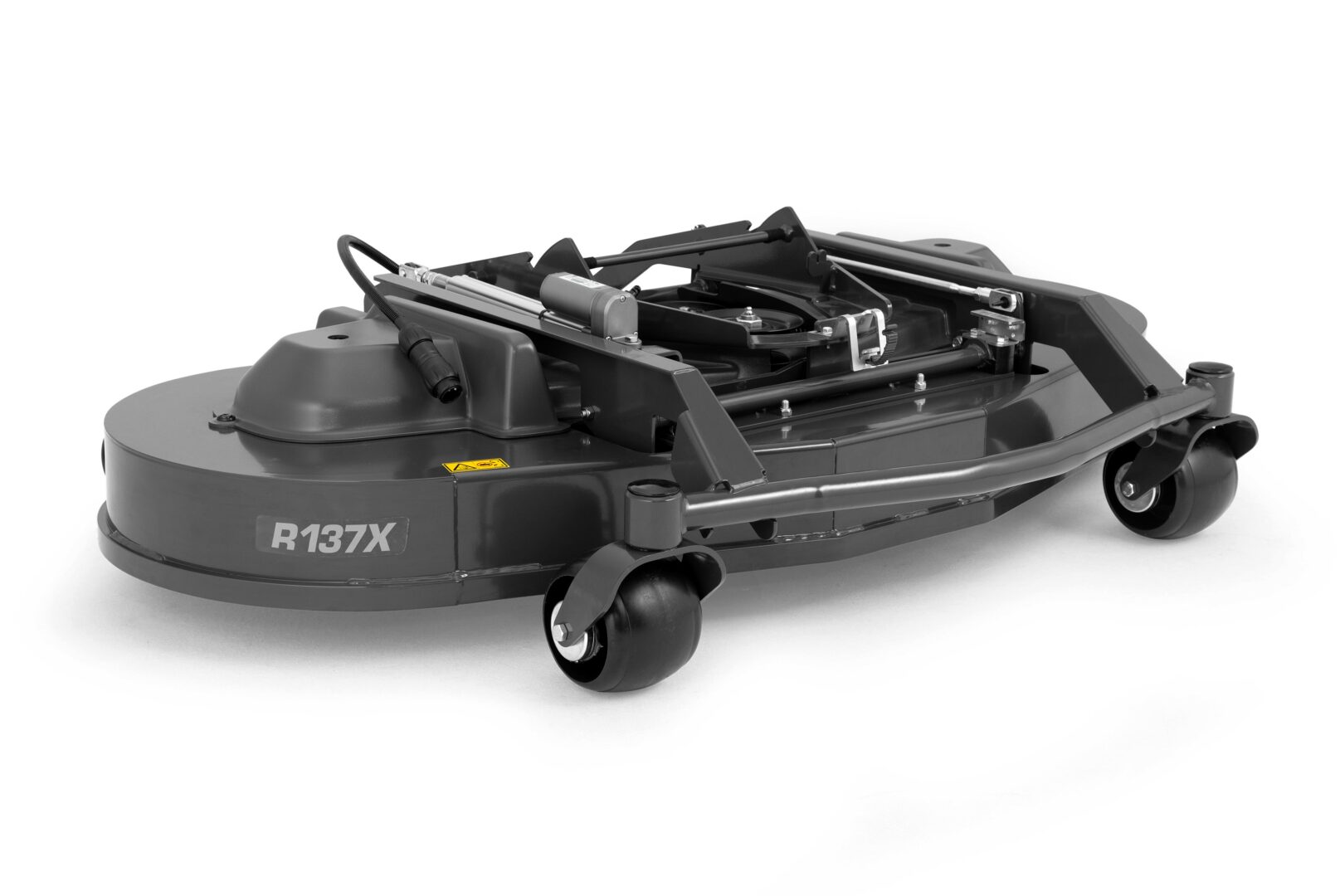 Husqvarna R137X je vysoko výkonné žacie ústrojenstvo so záberom 137 cm (54″) a zadným vyhadzovaním pre produktívne kosenie plôch s vyššou trávou. Elektrické nastavenie výšky kosenia je možné ľahko ovládať zo sedadla vodiča.