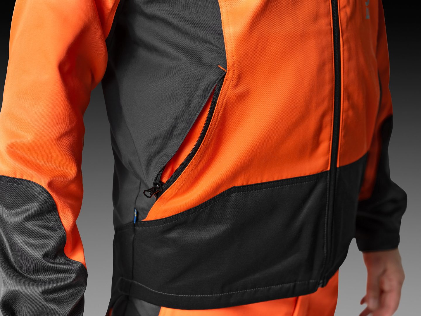 Lesnícka bunda Husqvarna Classic je navrhnutá na zabezpečenie základnej funkčnosti pri práci v lese a v prírode. Je navrhnutá vo farbách s vysokou viditeľnosťou a reflexnými logami na zlepšenie viditeľnosti vonku. Otvory v sedle zabezpečujú dobré vetranie, ktoré vám pomôže počas práce zostať v chlade. Náprsné vrecko a dve bočné vrecká slúžia na pohodlné uloženie vecí a zapínanie na cvoky na koncoch rukávov umožňuje rýchle prispôsobenie aj v rukaviciach.