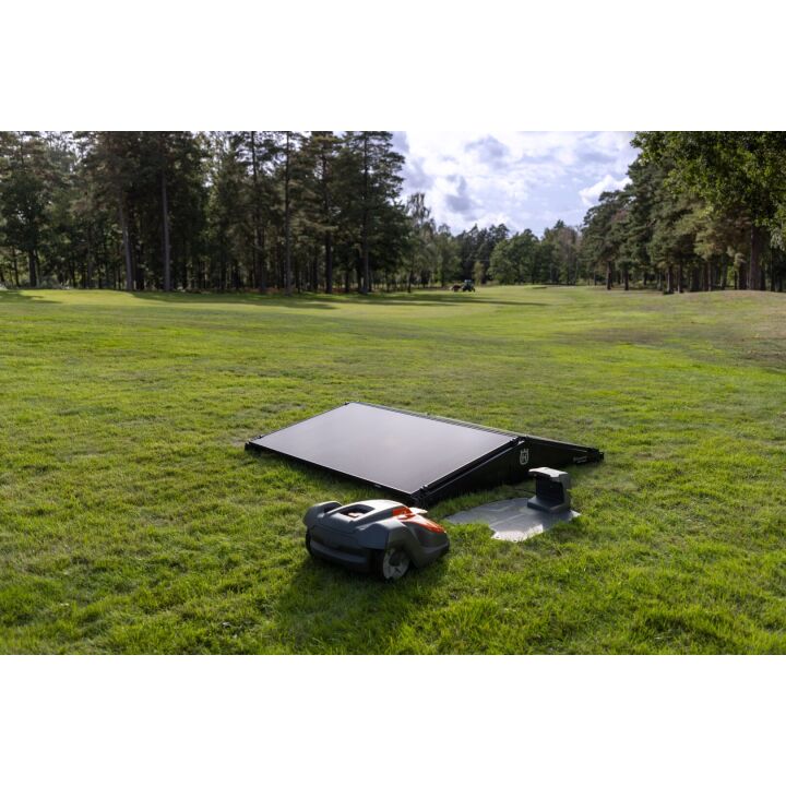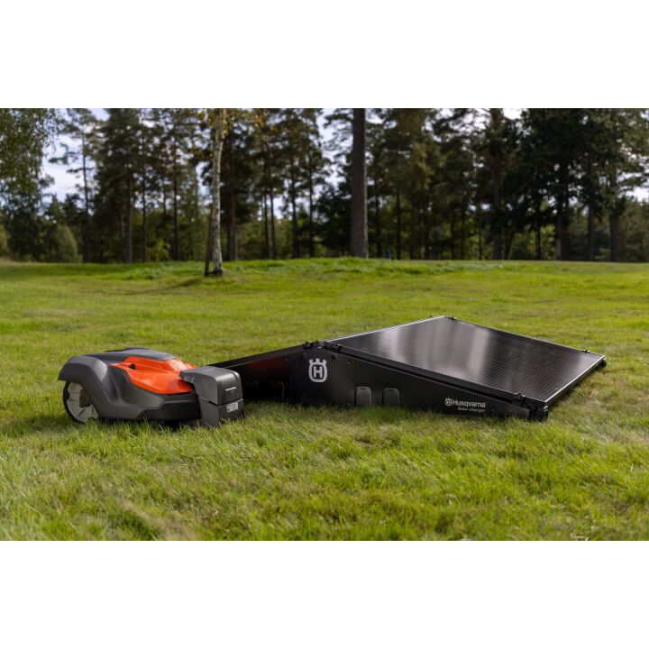 Solárny nabíjací systém Husqvarna ponúka alternatívne riešenie napájania pre kosačky Husqvarna Automower®. Je vhodný na použitie predovšetkým v oblastiach bez pevnej elektrickej siete, ako sú ihriská alebo kruhové objazdy a iné trávne plochy bez možnosti pripojenia na elektrickú sieť. Solárna nabíjačka obsahuje jeden panel a akumulátor, čo umožňuje až 24 hodín automatickej prevádzky každý deň. Keďže ju netreba upevňovať do zeme, umožňuje rýchlu a jednoduchú inštaláciu a minimalizuje sa potreba údržby. Tento 1-panelový systém je odporúčaný pre modely kosačiek Husqvarna Automower® 540 EPOS®, 560EPOS®, 580L EPOS®, 580 EPOS®.