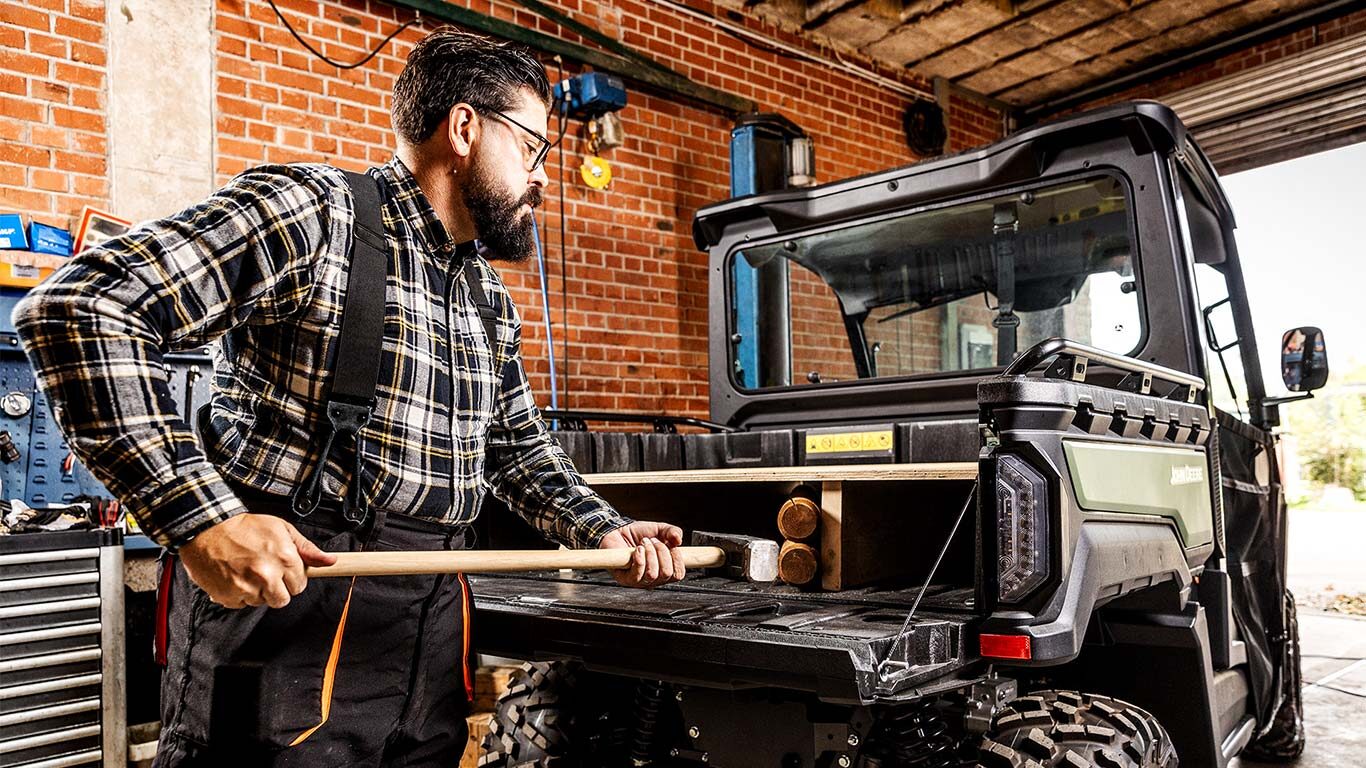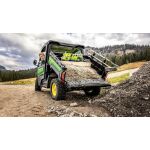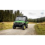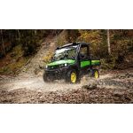 John Deere Gator XUV875M s kúrením a klimatizáciou je navrhnutý pre vaše pohodlie: posledná vec, ktorú potrebujete, je nepohodlné dopravné a úžitkové vozidlo. Predné sedadlá až pre troch cestujúcich, takže môžete byť vonku s niekoľkými pomocníkmi v teréne. Bohatý úložný priestor v kabíne a na korbe možno prakticky využiť. Tento model je vždy správna voľba. Nezáleží na tom kedy a kde pôjdete. Inovatívna technológia, robustná konštrukcia a vysoký výkon vám umožní zdolať i ten najťažší terén. Pohon všetkých kolies sa zapína veľmi jednoducho pomocou tlačítka v kabíne. Oba diferenciály v obidvoch nápravách majú vlastnú uzávierku. Sofistikovaná uzávierka zaisťuje, že výkon je prenášaný z kolesa ktoré stratilo trakciu na ostatné kolesá v plnom zábere. Predné a zadné odpruženie s vysokými zdvihmi a priečny stabilizátor na zadnej náprave zaisťujú komfort a bezpečnosť jazdy. Dokonca v extrémnych podmienkach. Odpruženie je možné nastaviť podľa predpokladaného zaťaženia. Kotúčové brzdy s dvojitými piestami sú ovládané rovnako ako v automobile, hydraulicky. Zaisťujú vysoký brzdný výkon a to vždy keď to potrebujete.
